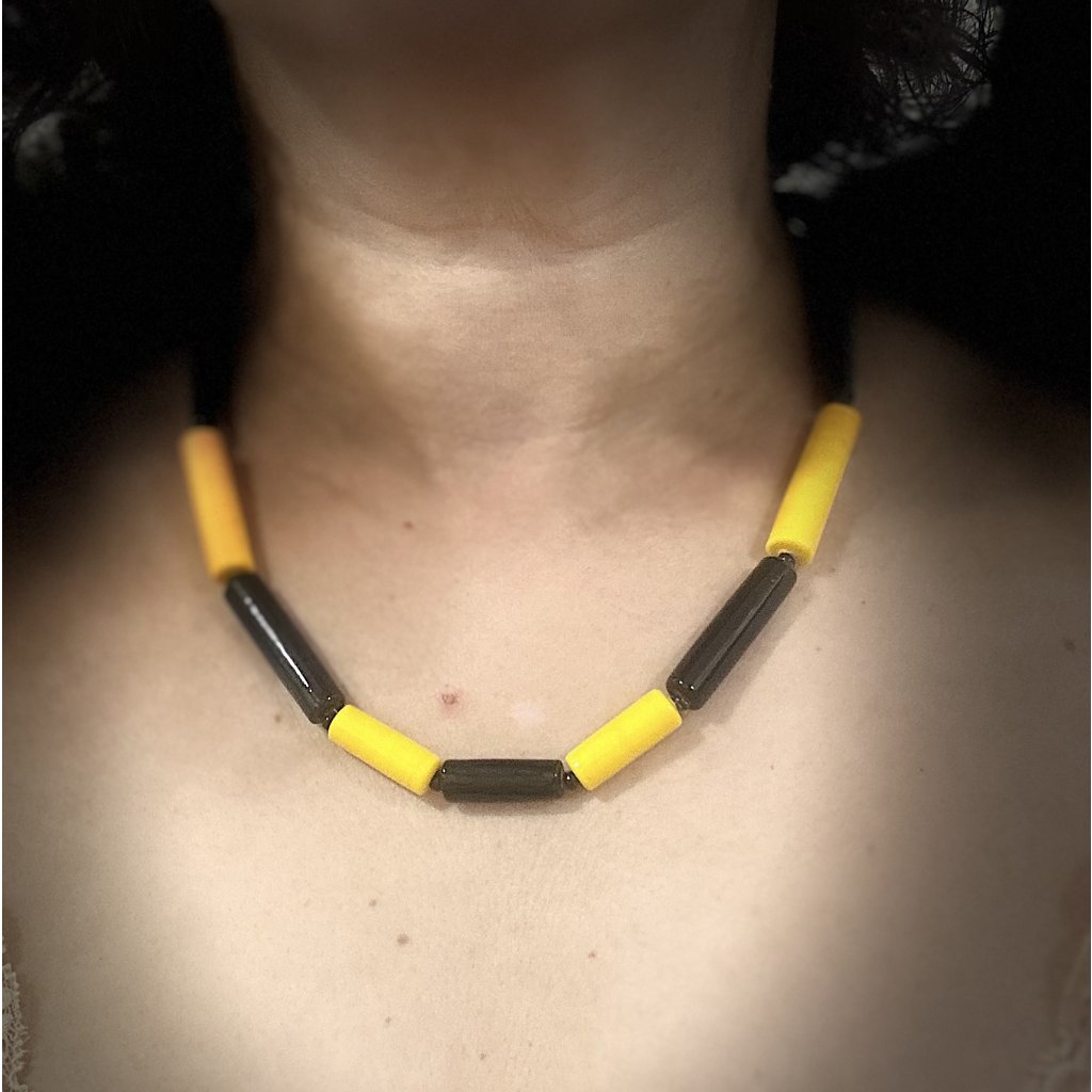 Černo žlutá kombinace, autorky oblíbená. Kontrast, který vyzvedne Vaší osobnost. Vhodné pro dámu, která chce zazářit.
